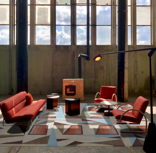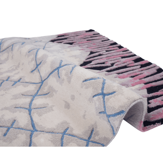 A series of hand-knotted rugs inspired by the vibrant and geometric artwork of Philadelphia based artist Elyce Abrams. Known for her exploration of complex emotional and existential themes, Abrams' abstract style manifests in paintings characterized by layered colors and dynamic compositions.